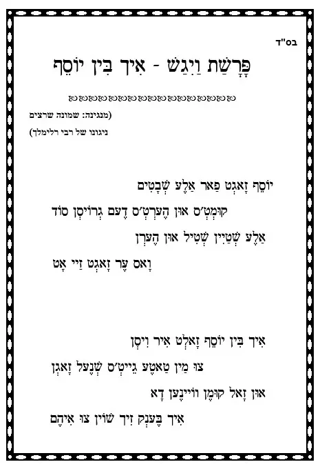 א ליד [שיר] אין אידיש – איך בין יוסף – ויגש