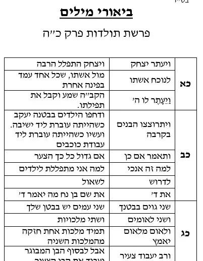 ביאורי מילים פרשת תולדות פרק כה וכו'
