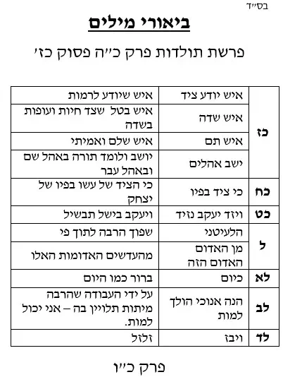 ביאורי מילים פרשת תולדות פרק כה מפסוק כז ופרק וכו'