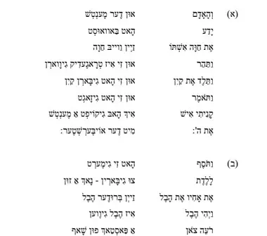 בראשית – טייטש – פרק ד' ה' ו' – אידיש