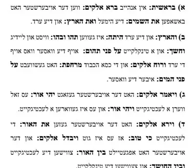 בראשית – טייטש – 5 פסוקים – אידיש