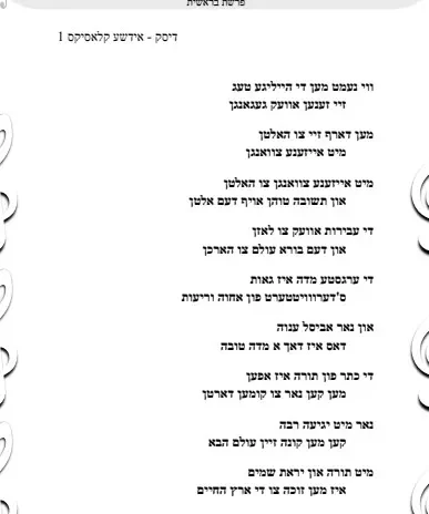 בראשית – שיר – גראמען – אחרי ימים הנוראים