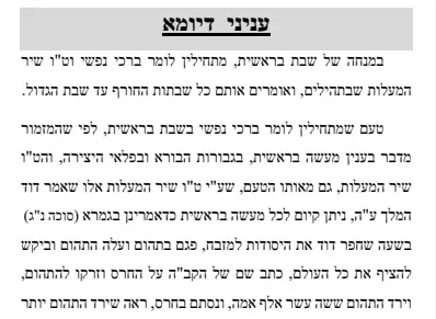 דבר תורה בראשית – עניני דיומא והפרשה