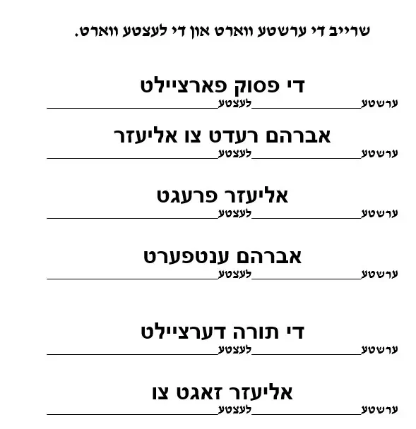 דף הבנה – חיי שרה – די מעשה מיט אליעזר שאלות