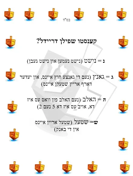 דף משחק – דריידל נ ג ה ש – חנוכה