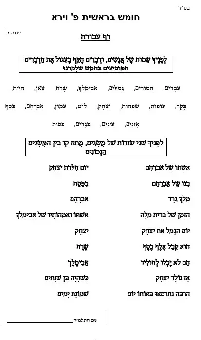 דף עבודה בהבנת הנקרא – שמות אנשים ומושגים – בפ' וירא (3)