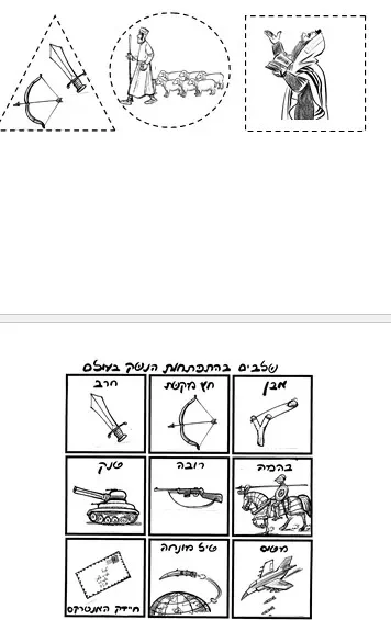 דף עבודה גזירה והדבקה – התפתחות נשק בעולם – הכנה למלחמה יעקב אבינו – ריבוע עיגול משולש