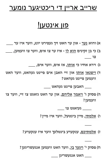דף עבודה – הבנה אידיש – וישב