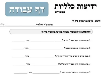 דף עבודה – הבנה – ידיעות כלליות – מספרים