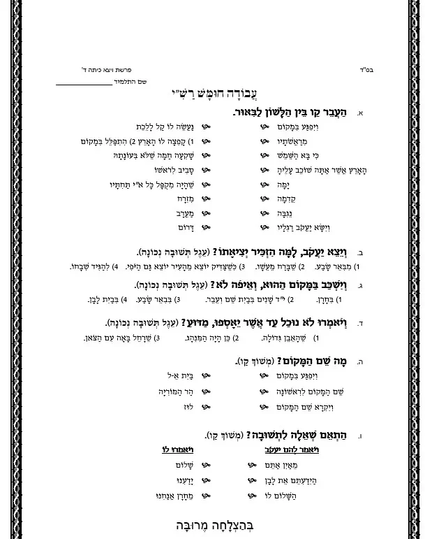 דף עבודה הבנה – כיתה ד – ויצא