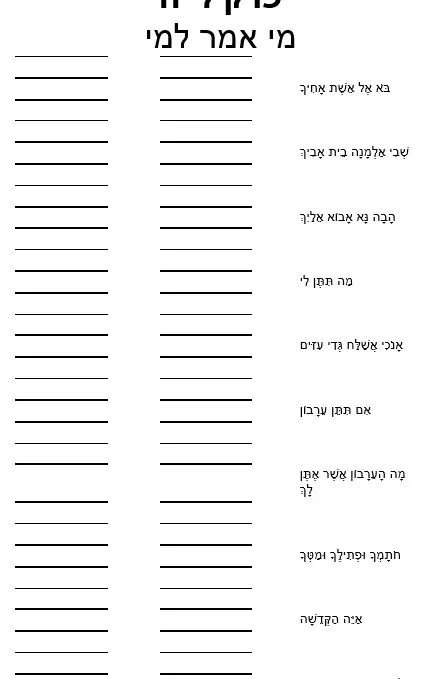 דף עבודה – הבנה מי אמר למי – וישב