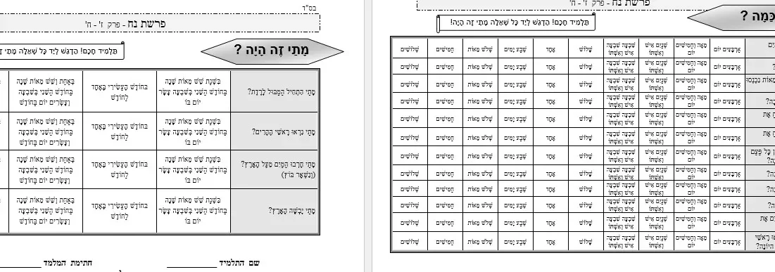 דף עבודה הבנה נח – פרק ז' – ח' – כמה זמן ומתי זה היה