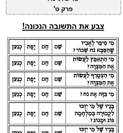 דף עבודה הבנה נח – פרשת נח פרק ט – מי זה היה