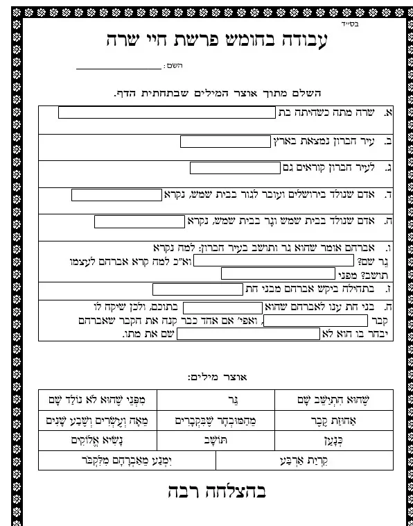 דף עבודה – חיי שרה – השלם את המשפט מהפסוק