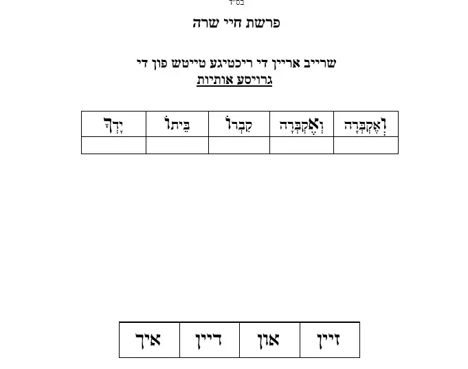 דף עבודה – חיי שרה – שימושים
