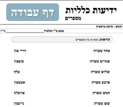 דף עבודה – ידיעות כלליות – מספרים