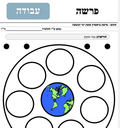 דף עבודה – לגיל הרך – בריאת העולם – שבת קודש – הדבקה