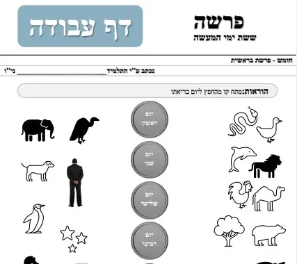 דף עבודה – לגיל הרך – בריאת העולם