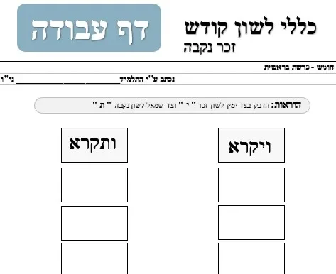 דף עבודה – כללי לשון קודש – זכר נקיבה