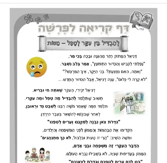 דף קריאה – להבדיל בין טפל לעיקר – לפרשת מטות