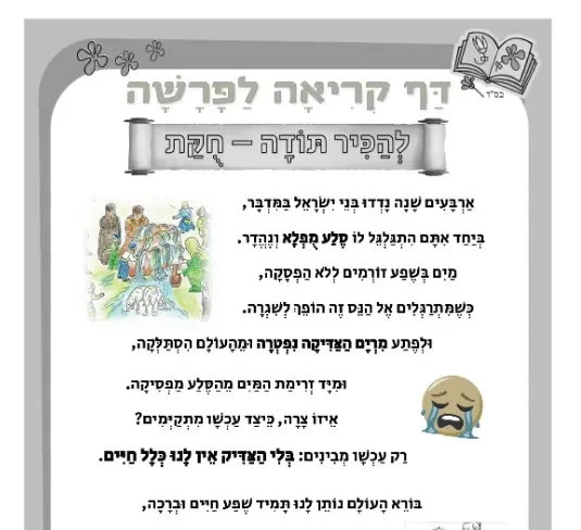 דף קריאה – 'להכיר תודה' לפרשת חקת