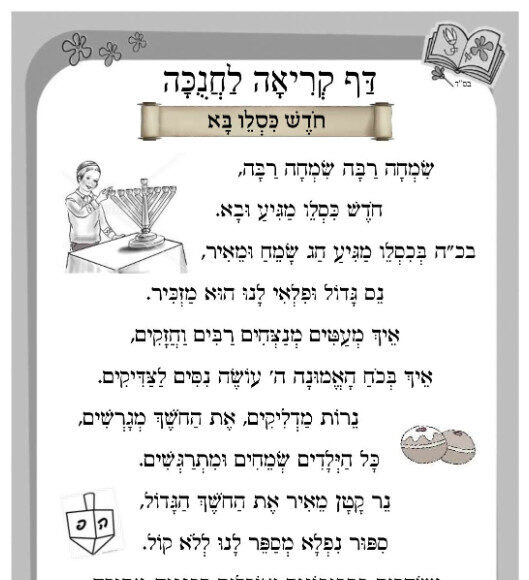 דף קריאה לחנוכה – חודש כסליו בא