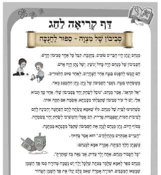 דף קריאה לחנוכה – סביבון של מצוה