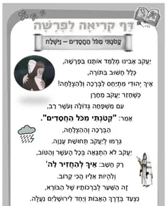 דף קריאה לפרשת וישלח – קטנתי מכל החסדים (כיתה א')