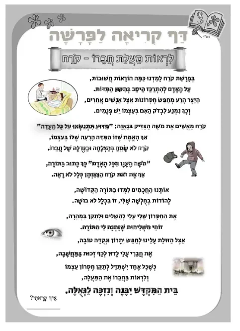 דף קריאה – 'לראות מעלת חברו' לפרשת קרח