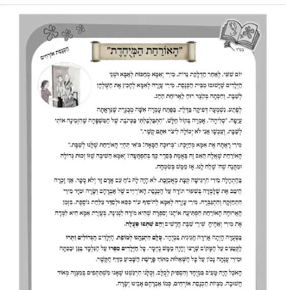 דף קריאה – סיפור בנושא הכנסת אורחים – סדרת עבודת המידות