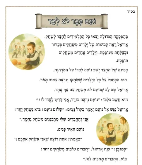 דף קריאה – סיפור בנושא רגישות לחבר – סדרת עבודת המידות
