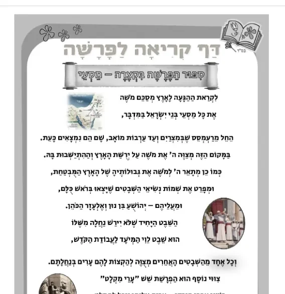 דף קריאה – סיפור הפרשה בקצרה – לפרשת מסעי