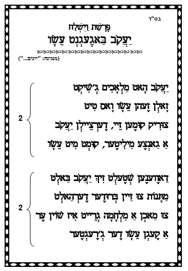 דף שיר באידיש – יעקב פוגש את עשו – וישלח