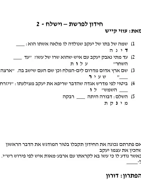 דף שעשועונים – חידות – תפזורת – שרשרת מילים – וישלח – מאת עוזי קייש