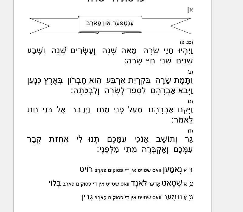דפי הבנה – חיי שרה – אידיש