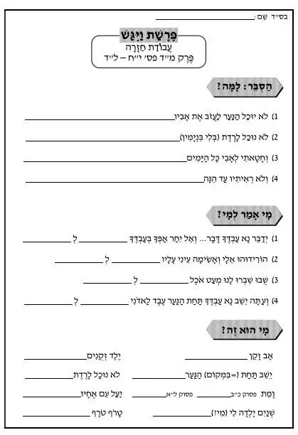 דפי עבודה חומש בהבנה פרשת ויגש
