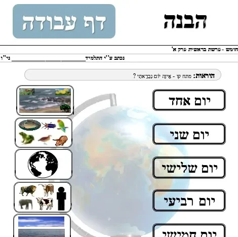 דף עבודה – הבנה – ימי בראשית