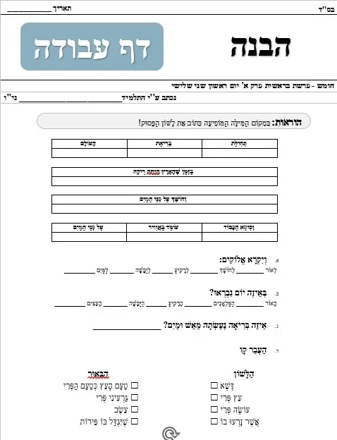 דף עבודה – הבנה