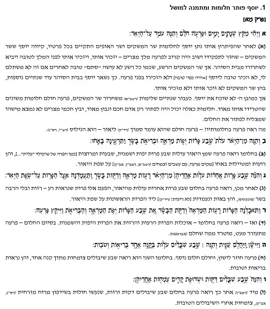 הסבר צמוד לפסוקים – מקץ