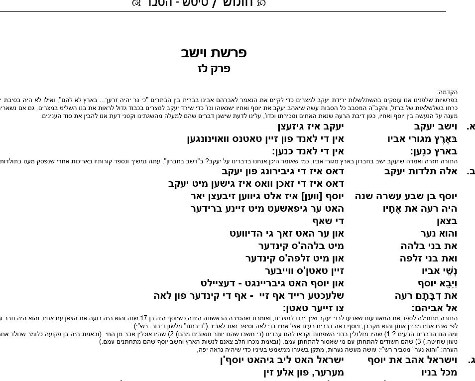 חוברת למידה – טייטש + הסבר – על כל פרשת וישב