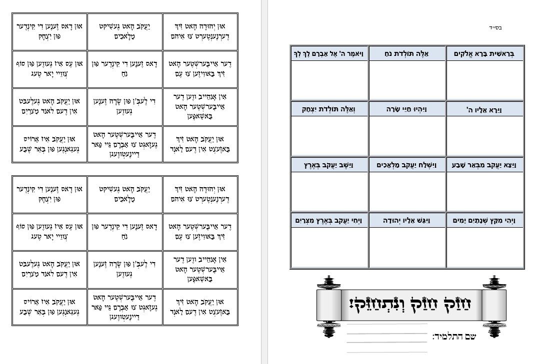 חזרה על כל חומש בראשית – ראש כל פרשה ופרשה