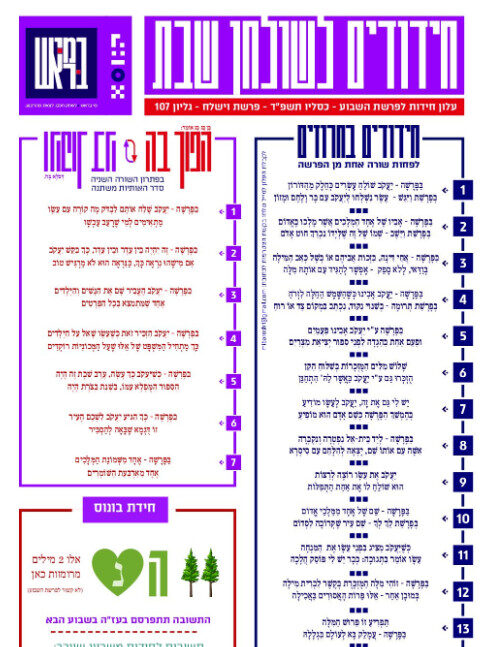 חידודים לשולחן שבת לפרשת וישלח (שנת פ"ד)