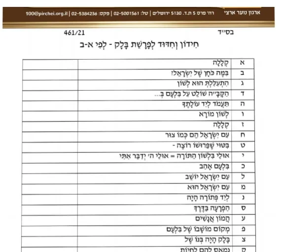 חידון א' ב' פרשת בלק בלי תשובות (1) – פרחי הדגל