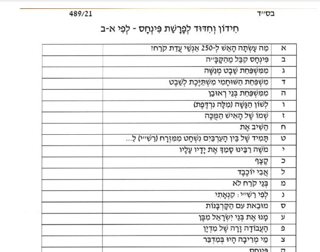 חידון א' ב' פרשת פנחס בלי תשובות (1) – פרחי הדגל