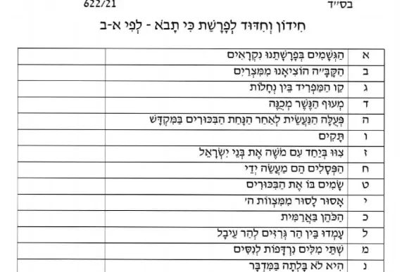חידון א ב 1 בלי תשובות לפרשת כי תבא (פרחי הדגל)