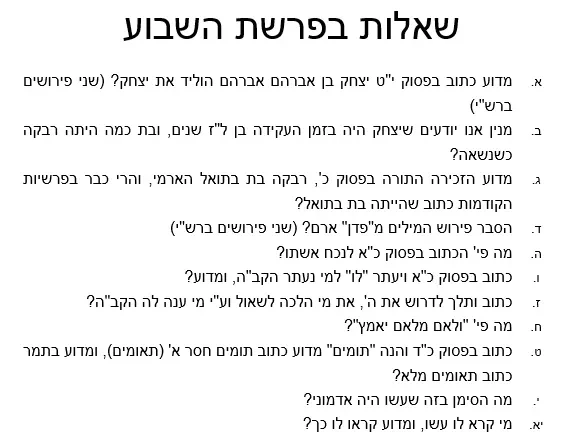 כ"ג שאלות – מבחן בחרשי פרשת תולדות