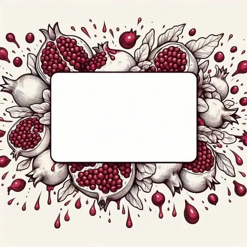 כרטיס שנה טובה – מסגרת מלבנית, רימונים נוטפים ועלים (2)