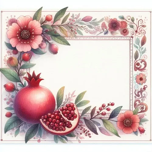 כרטיס שנה טובה – מסגרת מרובעת, רימונים ופרחים (2)