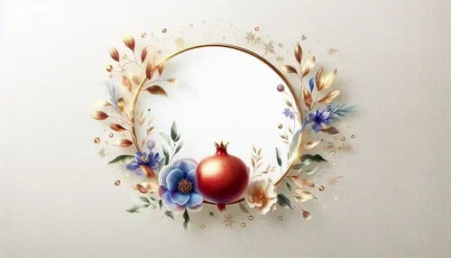כרטיס שנה טובה – מסגרת עגולה, רימונים ופרחים (1)