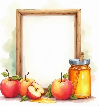 כרטיס שנה טובה עם מקום למלל – צנצנת דבש ותפוחים (1)